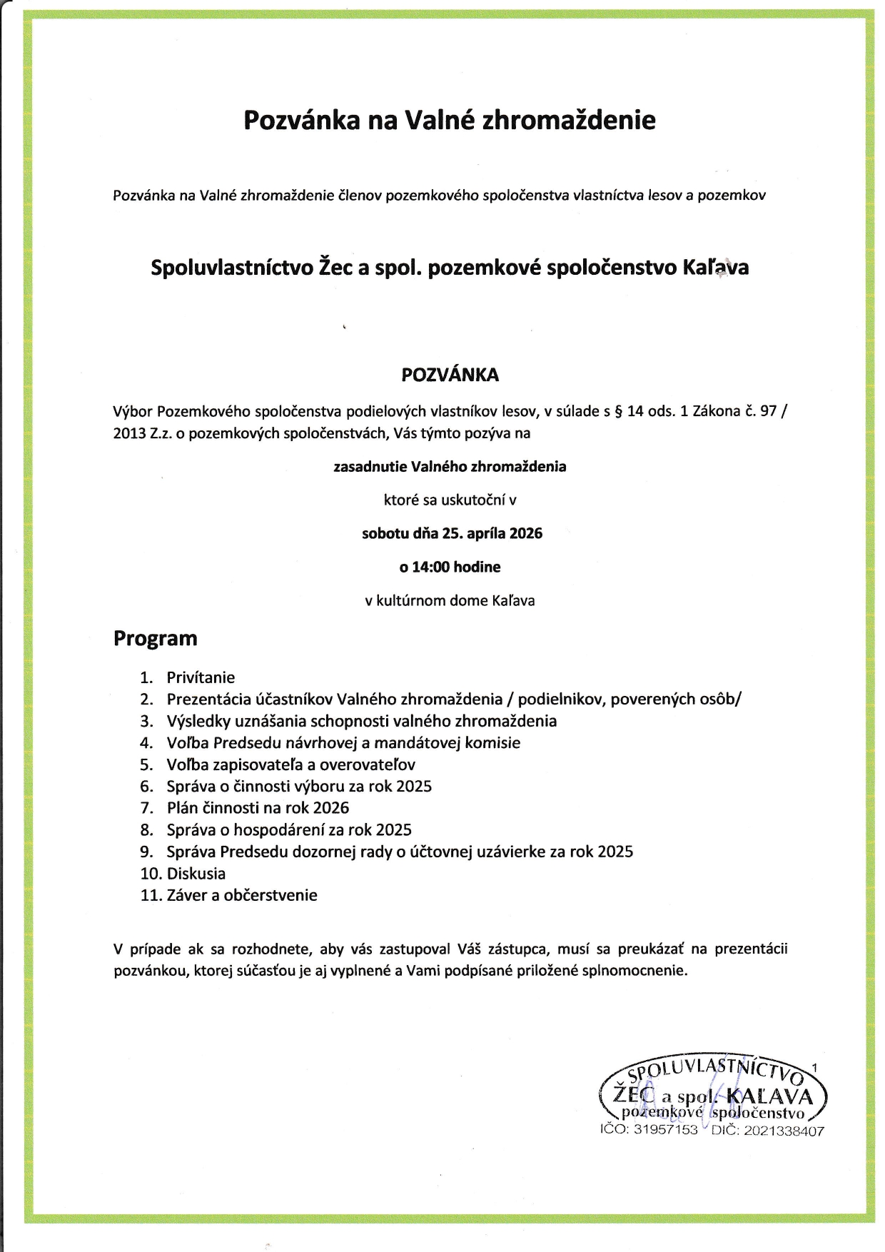 V prípade ak sa rozhodnete, aby vás zastupoval Váš zástupca, musí sa preukázať na prezentácii pozvánkou, ktorej súčasťou je aj vyplnené a Vami podpísané priložené splnomocnenie.